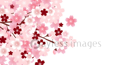 綺麗かわいい桜のイラスト素材 コピースペース 横長 透過png 白背景 春素材 背景のイラスト素材